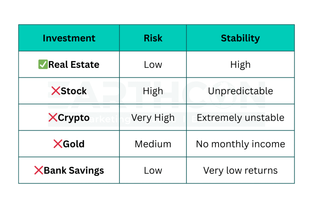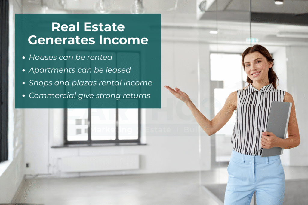 Even during economic slowdowns, real estate stays strong because people will always need homes, shops, offices, and land.